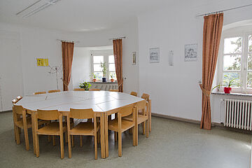 Für Arbeitsgruppen und Programmgestaltung können Sie drei bestens ausgestattete Seminarräume in Anspruch nehmen. Der große Seminarraum eignet sich für Gruppengrößen bis 60 Teilnehmer, ein weiterer für 30. Im gemütlichen Turmzimmer finden 15 Personen Platz.