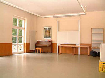 Die technische Ausstattung lässt nichts zu wünschen übrig: Computer, Beamer, Fernseher, W-LAN, Internet, VHS, DVD. Zum Musizieren steht ein Klavier bereit.
