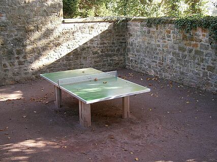 Sportangebote stoßen gerade bei Kindern und Jugendlichen auf große Begeisterung. Das Burggelände verfügt über einen Basketball- und Bolzplatz, der im Sommer wohltuend von alten Platanen beschattet wird. Freunde des Tischtennis können wählen, ob sie drinnen oder draußen die kleinen Bälle übers Netz jagen möchten. Zudem lädt der Schlosshof zum sportlichen und spielerischen Zeitvertreib ein.