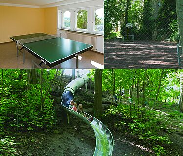 Je nach Alter und Vorlieben sind bei den Kids ganz unterschiedliche Spiele angesagt. Bringen sie einfach alles mit, was Sie für die Lieblingsspiele Ihrer Schützlinge brauchen. Für Abenteuer, freies Spiel und zum Herumtollen eignen sich vor allem die Außenanlagen und der nahe Schlosspark. Besonders die Riesenrutsche steht in der Gunst unserer Gäste ganz weit oben. Strategen können sich beim Schach- oder Mühlespiel im Hof messen. Doch nur die Mutigsten begeben sich in der Dämmerung auf die Suche nach dem Schlossgespenst.