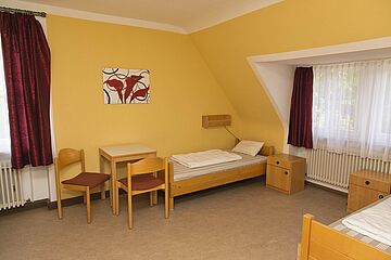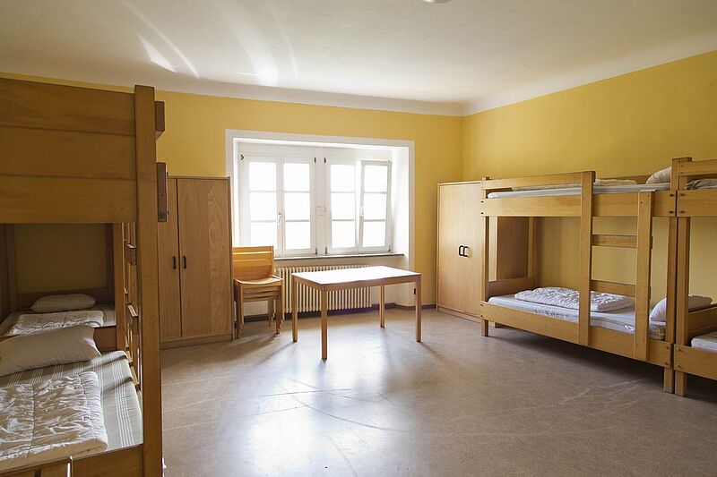 Ihre Gemäuer und die freie Lage hoch über dem Tal bieten alle Reize einer mittelalterlichen Burganlage. Im Gegensatz zu den ritterlichen Burgherren von früher müssen Sie auf neuzeitlichen Komfort allerdings nicht verzichten. Bis zu 68 Gäste finden bei uns Unterkunft. Die jugendlichen Teilnehmer sind auf zwei Etagen in geräumigen Mehrbettzimmern mit 6 bis 8 Betten untergebracht. Die Zimmer bieten einen herrlichen Ausblick. Auf jeder Etage befinden sich moderne Dusch- und Toilettenräume.